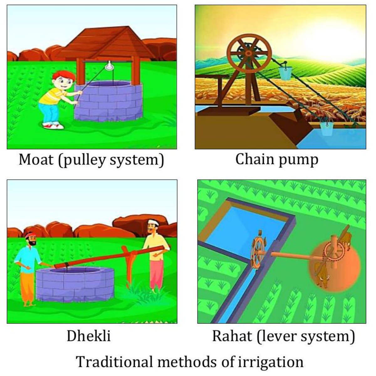 (ii) Traditional tool: The tool used traditionally for sowing seeds has shape like a funnel. The seeds are filled into the funnel, passed down through two or three pipes having sharp ends. These ends pierce into the soil and place seeds there.