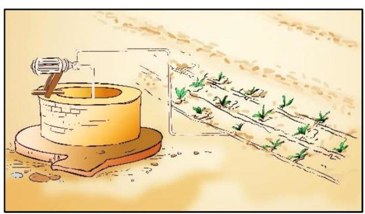 (iii) Seed drill : Seeds are sown by the seed drill with the help of a tractor. It saves time and labour. This tool sows the seeds uniformly at proper distance and depth.
