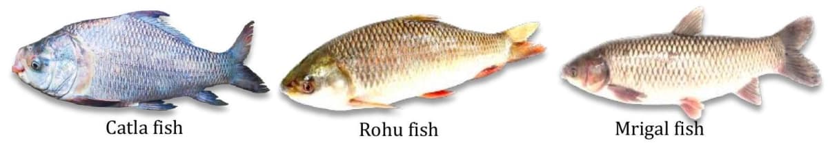 (ii) Fresh water fishes: Catla, Rohu and Mrigal.