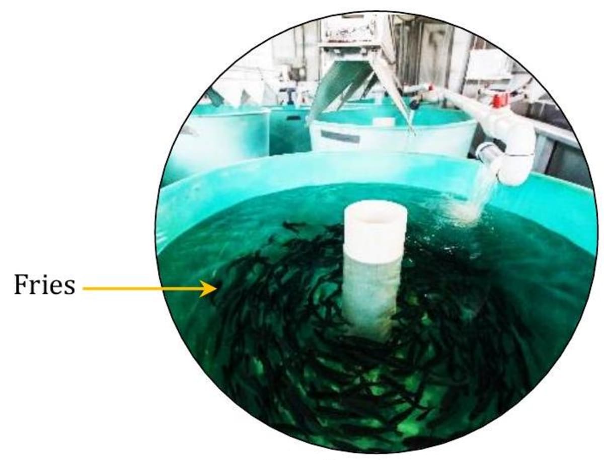 (iv) The fish eggs are introduced into small ponds called hatcheries. In hatcheries, fries hatch out of eggs which are transferred to a larger culture pond where they get proper food, light and oxygen. The fishes are harvested when they attain the required size.