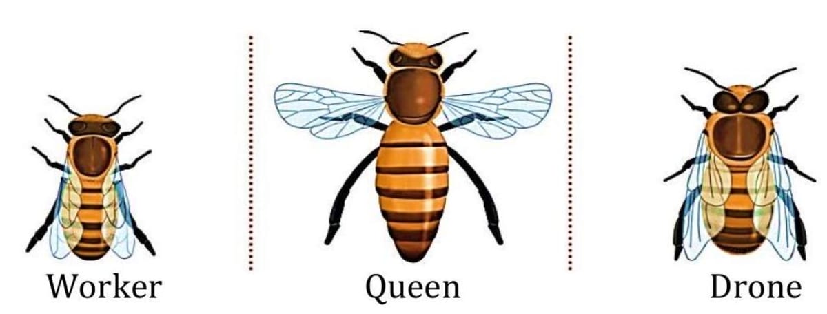 (ii) Drone bee : Drones are smaller in size than the queen, and their function is to fertilize the queen.
