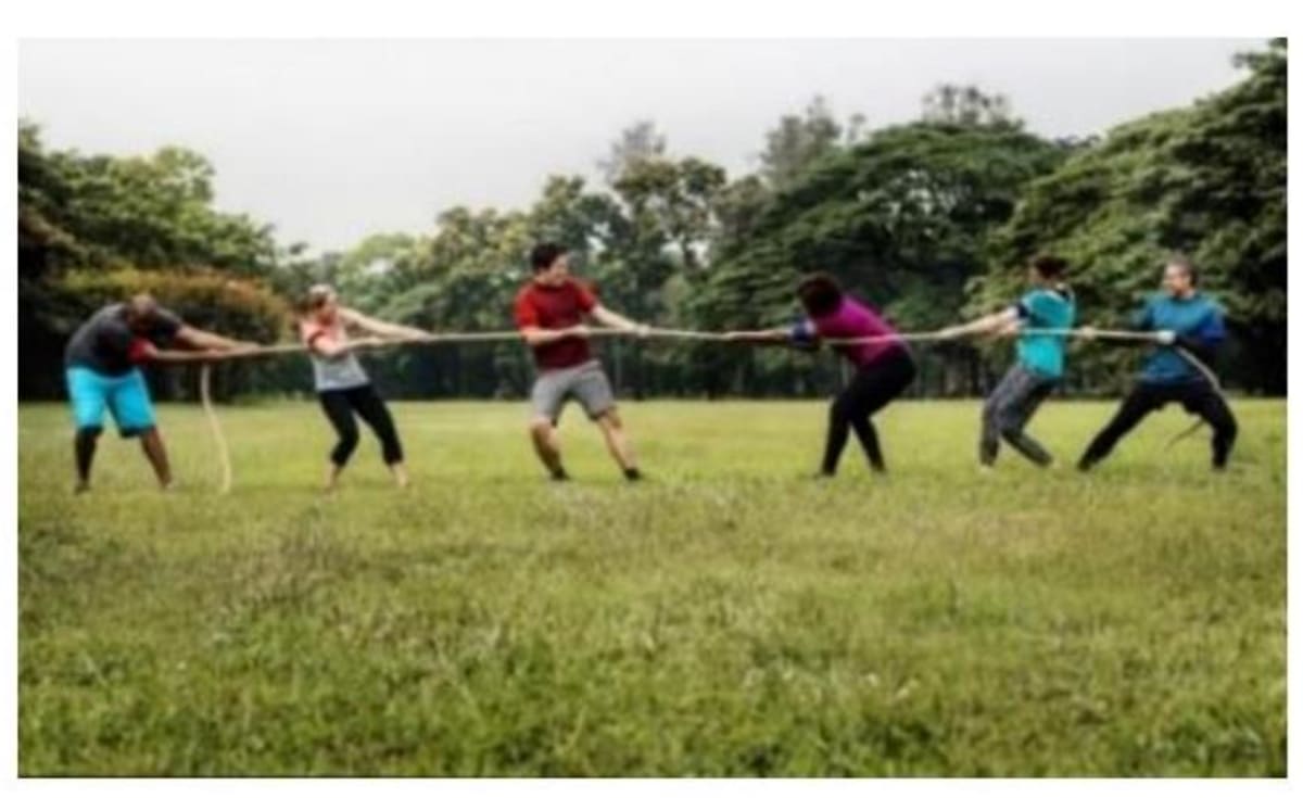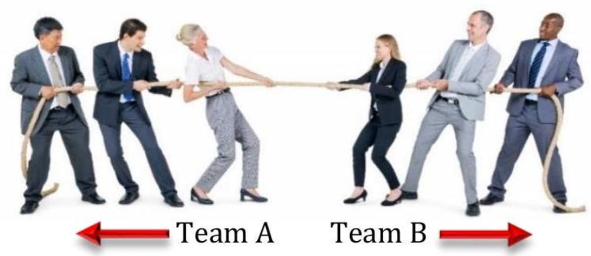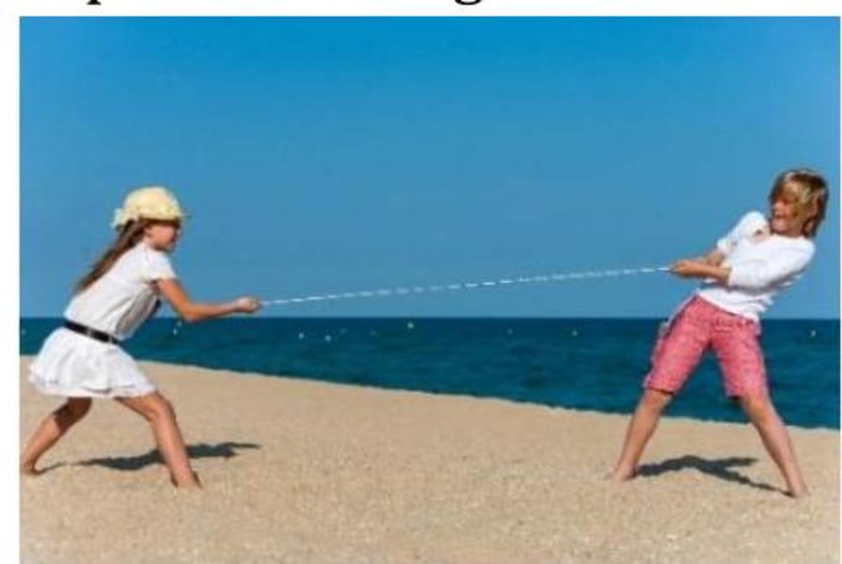 In the game of 'tug-of war', two teams pull a rope in opposite directions (see figure). Members of both the teams try to pull a rope in their direction. Sometimes the rope simply does not move. The team that pulls harder, that is, applies a larger force, finally wins the game.