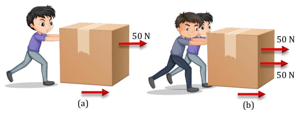 Let us consider a man standing behind a stationary car. Now, if the man begins to push the car, that is, he applies a force on it, the car may begin to move in the direction of the applied force [see figure]. The man 'pushes' the car to make it move.