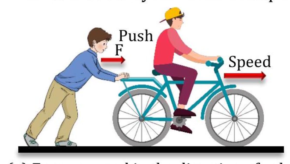 A force can cause a moving object to increase or decrease its speed. For example, when you kick a moving football in the direction of its motion, its speed increases. When you apply a gentle brake in your bicycle, its speed decreases as the applied force is opposite to the motion of the cycle. Some examples of this are shown in figure.