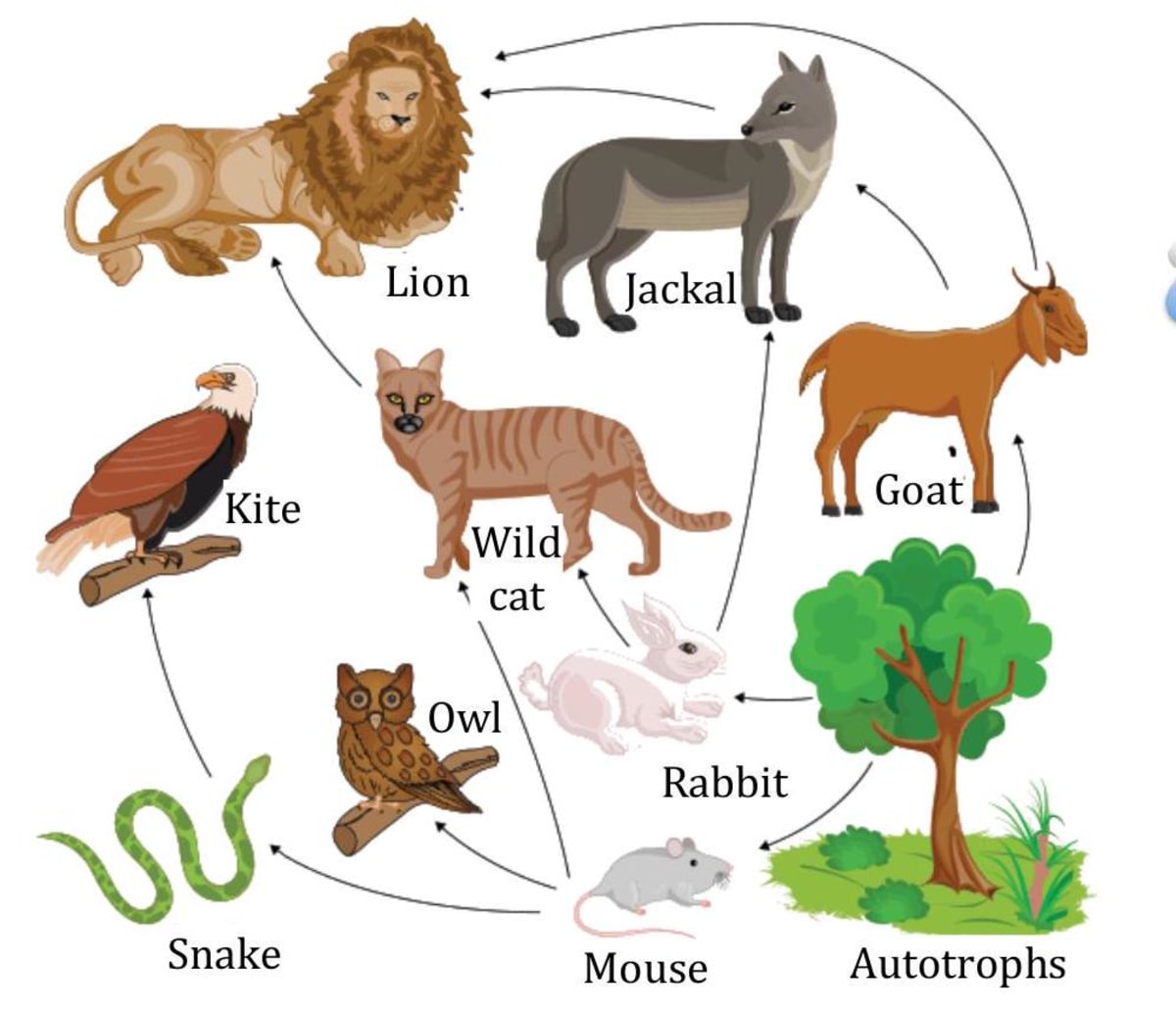 Several food chains that exist in nature are interconnected. For example, a rat and a hen both eat grains. Both of them can be eaten by a cat. A cat can be eaten by a bigger animal such as a wolf. But a wolf can also eat a hen and a rat directly. There also exists a more complex representation of energy flow in nature. We call such a representation a food web, as it appears like a web that a spider spins.