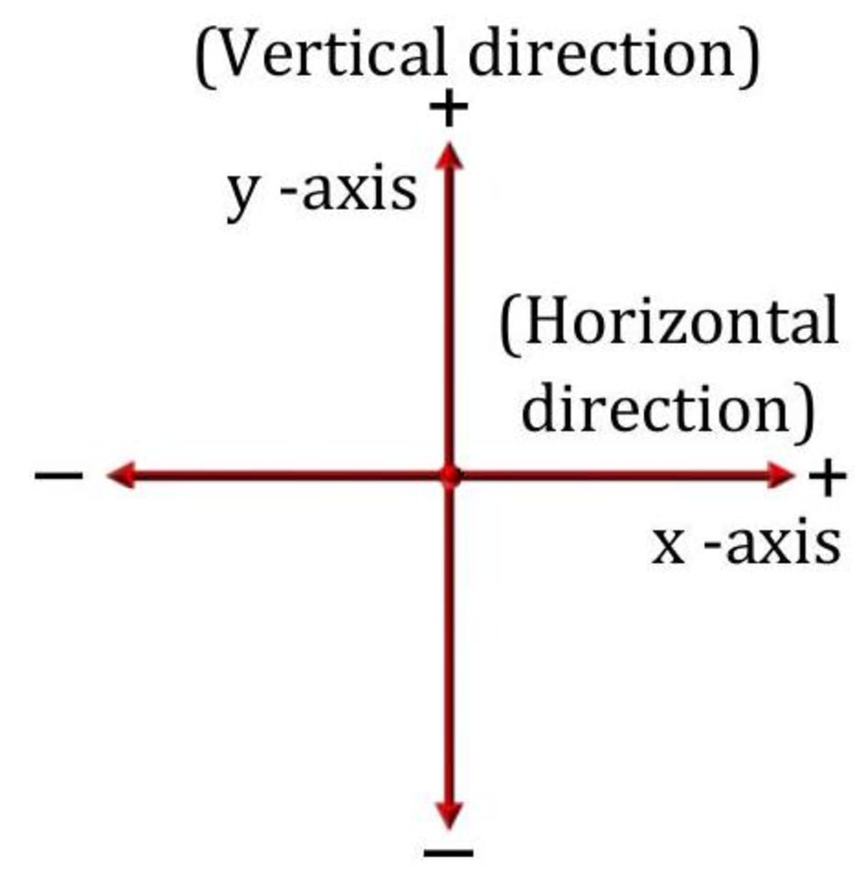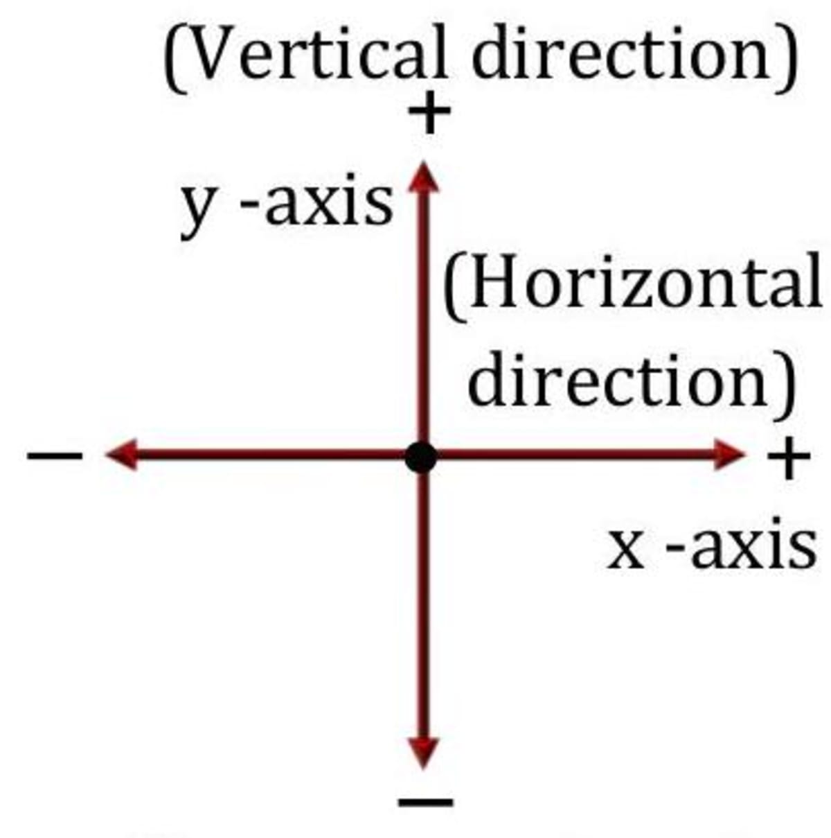 One way of indicating the direction is to use a plus ( + ) or a minus (-) sign. The plus sign can be the direction from the reference point, is in the reference direction (see figure). A minus sign means the direction is opposite to the reference direction. For example, plus ( + ) sign can be used to indicate 'towards the school' in the figure on previous page and minus (-) sign to indicate 'away from the school'.
