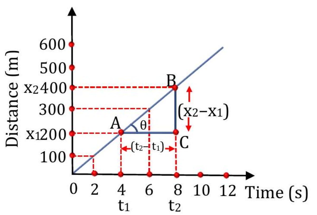 In uniform motion, constant as speed Now, Since is constant , thus, the distance-time graph of such a body is a straight line, inclined to x -axis.