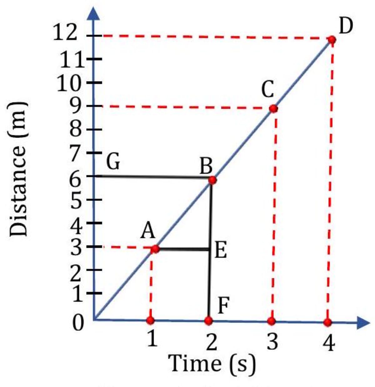 This graph is plotted between the time taken and the distance covered, the time is taken along the x -axis and the distance covered is taken along the y -axis.