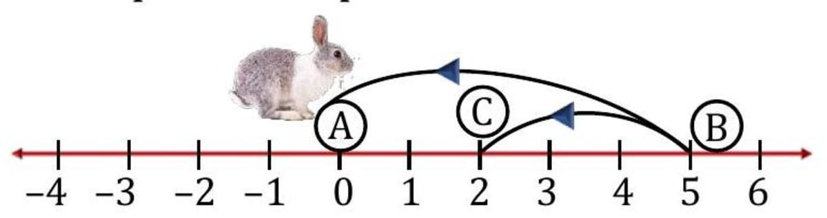 In the given figure a rabbit moves from place 'A' to place ' B ' and reaches place ' C '. How much distance the rabbit covers from place A' to place 'C?