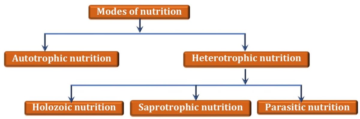 Mode of nutrition in which the organisms derive their nutrition by taking readymade food, from other dead or living plants and animals e.g., Animals, fungi and most of bacteria. The survival of heterotrophs depends directly or indirectly on autotrophs. Heterotrophic mode of nutrition is classified into three types on the basis of methods of obtaining food.