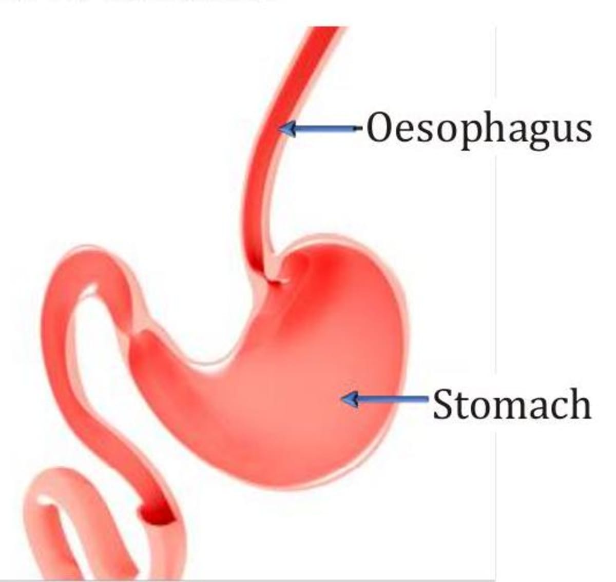 It is a thick, muscular and J shaped sac present on the left side of upper part of abdomen just below the diaphragm. Gastric glands are present in the wall of stomach. These release gastric juice which contains mucus, hydrochloric acid and two inactive protein digesting enzyme called pepsinogen and prorennin. The muscular walls of the stomach help in mixing the food thoroughly with digestive juices.