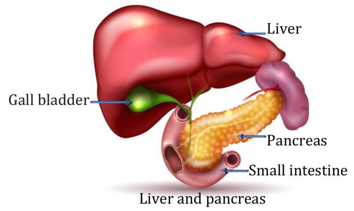 Food is mixed with three digestive juices (bile juice, pancreatic juice and intestinal juice). Bile juice (from the liver) provides alkaline medium and emulsifies fats (conversion of Gall bladderlarger fat globules into smaller fat droplets) but it is a non-enzymatic digestive juice so has no chemical action on food. Pancreatic juice (from the pancreas) contains trypsin, pancreatic amylase and pancreatic lipase enzyme which digest the proteins, starch and emulsified fats into peptides, maltose, fatty acids and glycerol respectively.