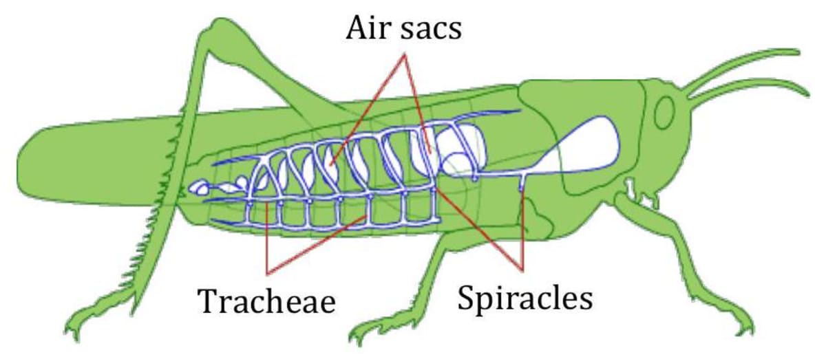 Cockroach, grasshopper and other insects have small openings on the sides of its body. These openings are called spiracles. Insects have a network of air tubes called tracheae for gas exchange. Oxygen rich air rushes through spiracles into the tracheal tubes, diffuses into the body tissue and reaches every cell of the body. Similarly, carbon dioxide from the cells goes into the tracheal tubes and moves out through spiracles.