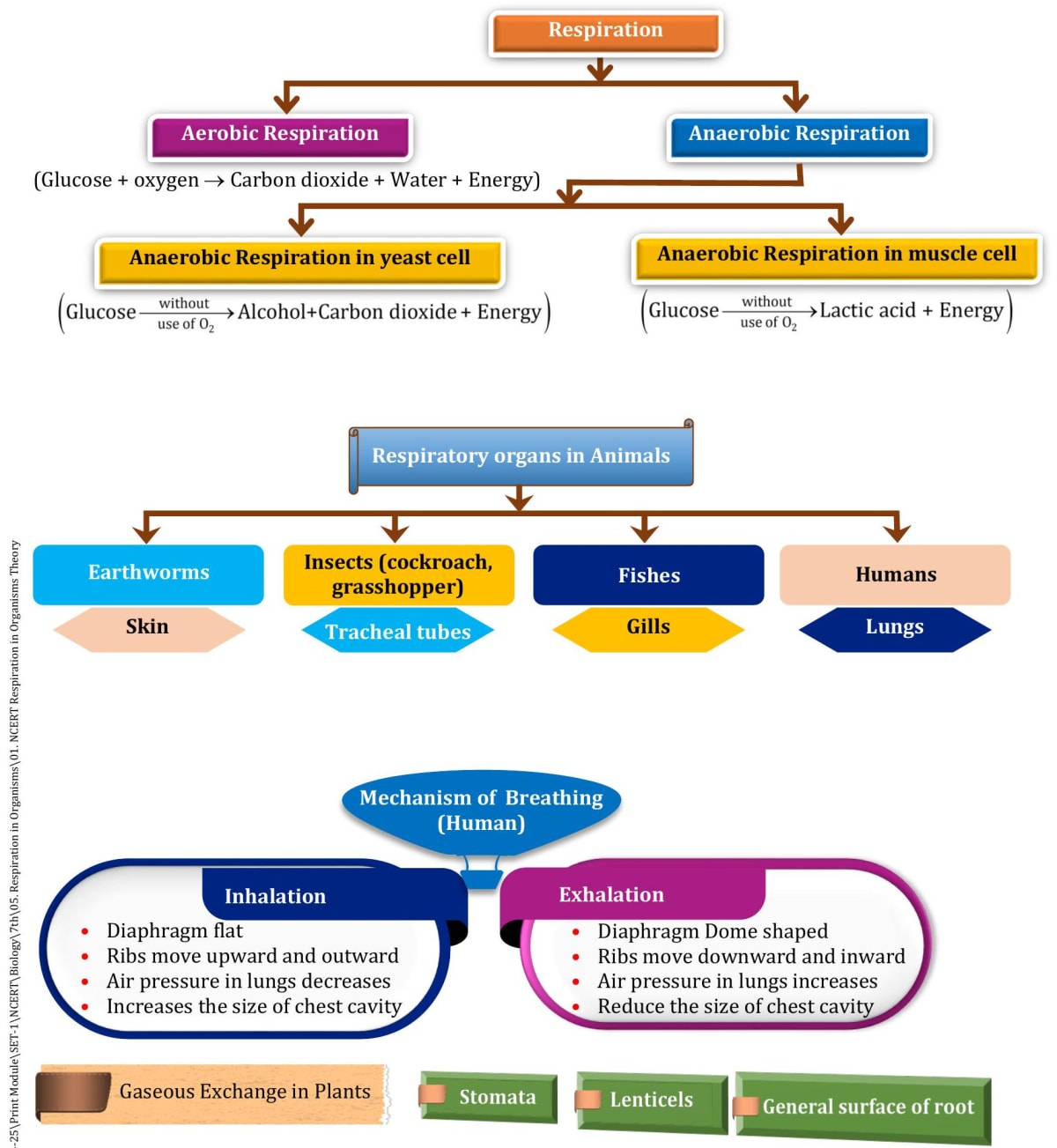 The process of respiration is similar in all organisms, whether plants or animals. Carbon dioxide is given out and oxygen is used up, and a lot of energy is produced.