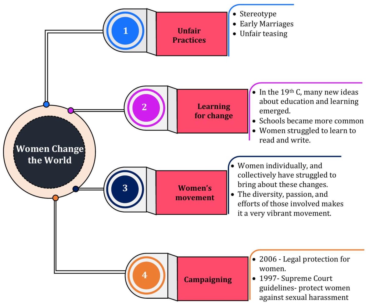 - This struggle is known as the Women's Movement. Individual women and women's organisations from different parts of the country are part of the movement.